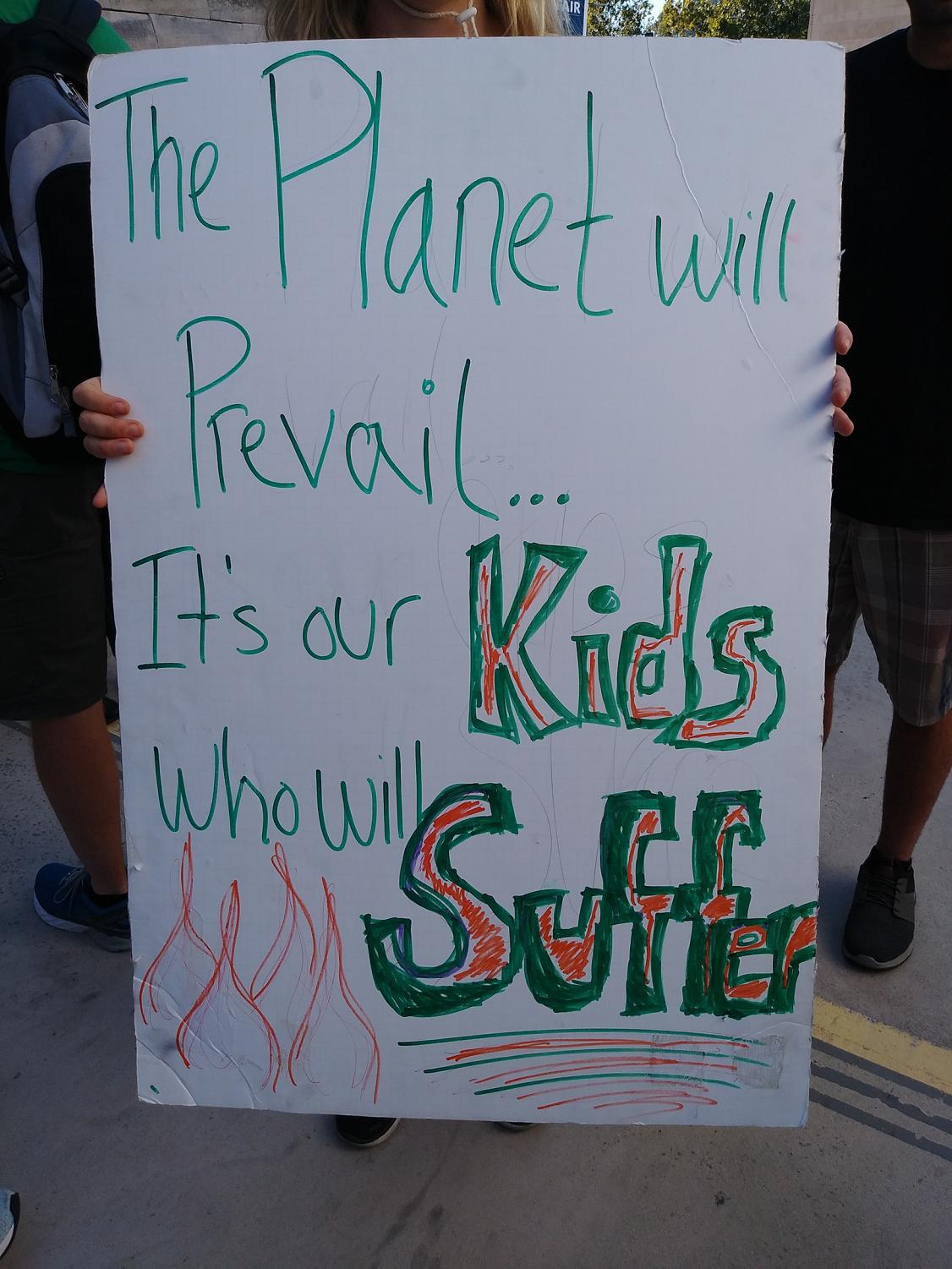 All around the event various people held up signs to show how climate change cannot be ignored and that everyone needs to do their part in stopping it. Some offered solutions.