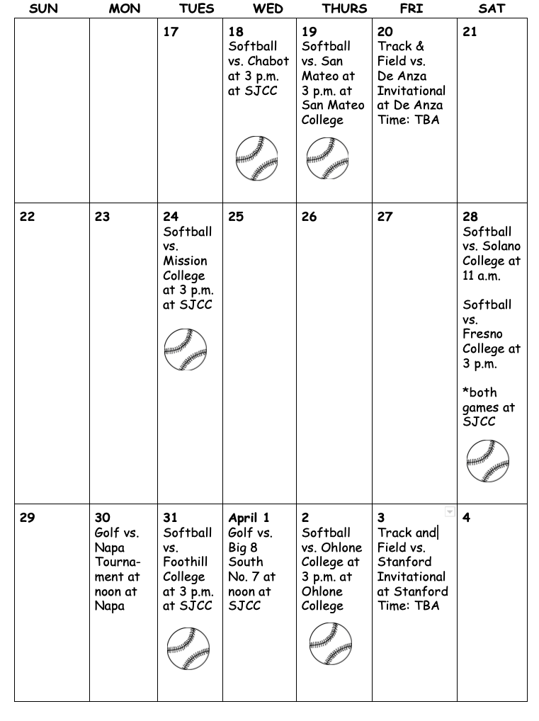 Update: Because of concern for the spread of coronavirus, all sporting events have been cancelled. Please check with SJCC.edu for the latest scheduling information.
