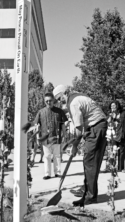 [media-credit id=11 align=”alignnone” width=”400″][/media-credit]From left: Councilman Kensen Chu, Ismael Nass of Islamic Networks Group and Merylee Shelton, commun-ications studies instructor, commemorate International Day of Peace at San Jose City College on Sept. 21 by dedicating a peace pole in front of the Technology Center. Peace poles worldwide mark this day, which was established by the United Nations in 1981 as an annual day of nonviolence and cease-fire.